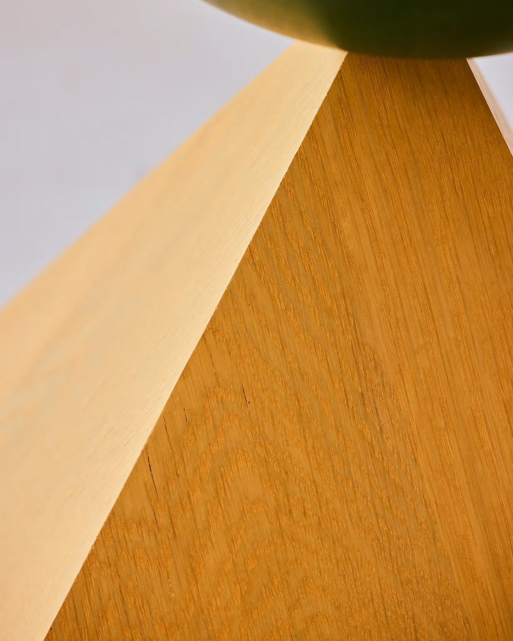 Solid White Oak, Linolie Oil Stain, Brushed Brass Lighting Components. Hand dyed fringe shade