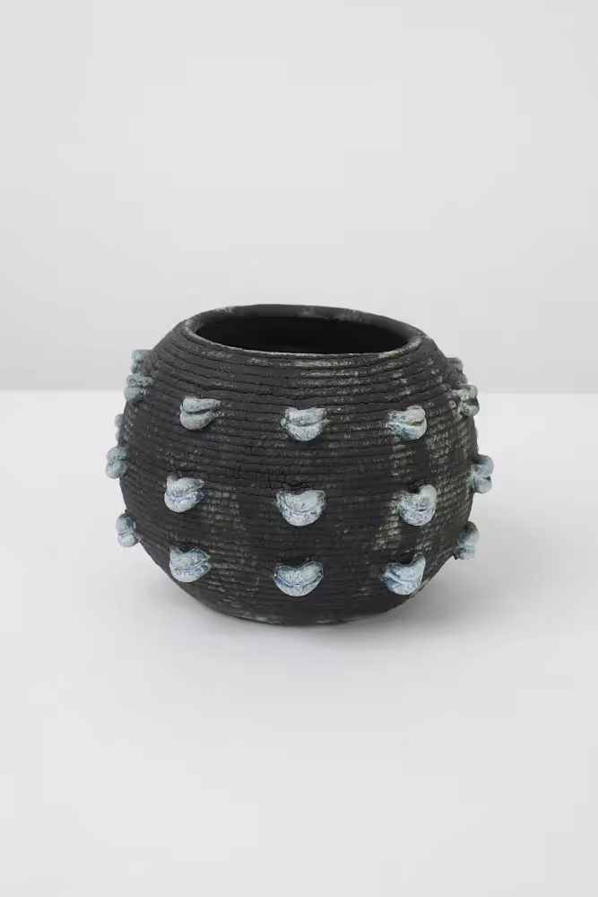 Los Angele-based artist Pilar Wiley makes ceramic vessels that serve as canvases for her repeating patterns and pictorial imagery. Her surfaces express the idiosyncrasies of mark making, referencing global traditions of decorative abstraction, as well as shapes drawn from plant life and her childhood overseas. Influenced by the forms and techniques of West and South African pottery, Wiley advances a personal mythology through the repetitive ceramic process.